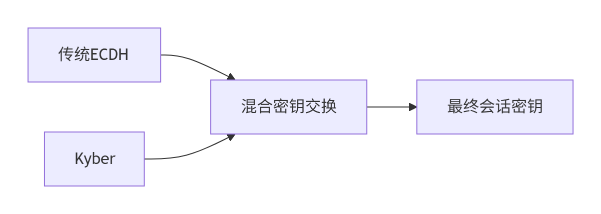 | Kyber512 | AES-128等效 | 1,184字节 | 1,088字节 | ~0.02ms |