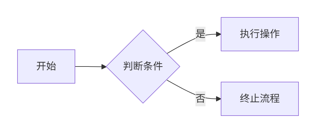 | graph LR A[开始] --> B{判断条件} B -->|是| C[执行操作] B -->|否| D[终止流程]